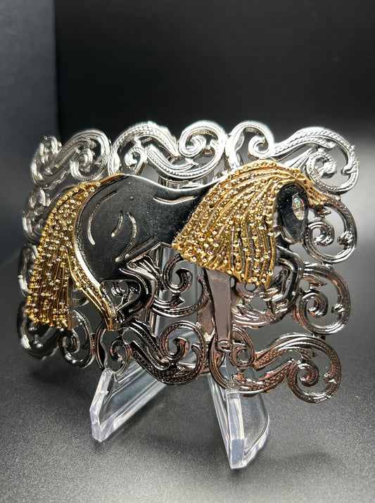 Silver Horseshoe Buckle With Gold Long Horn