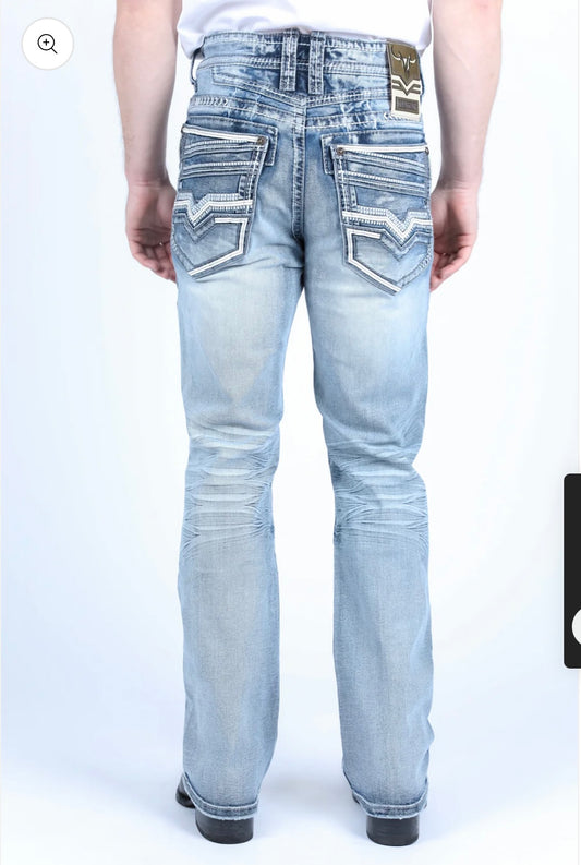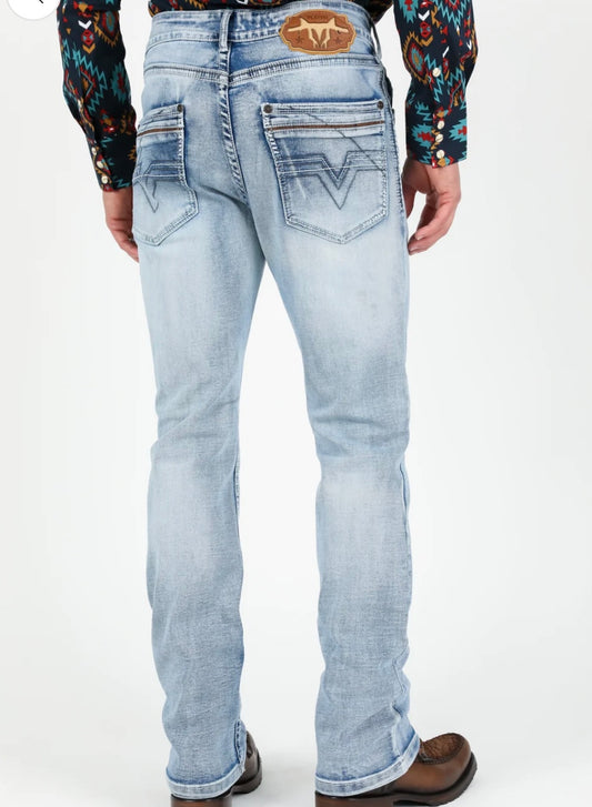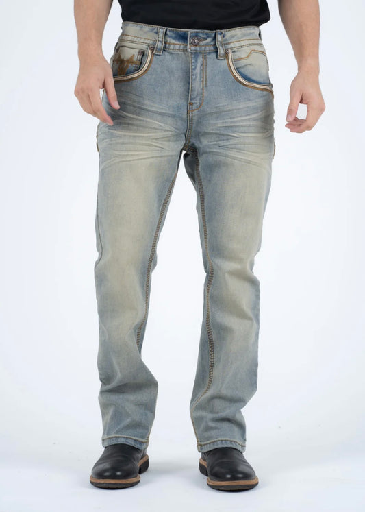 Platini Light Wash Brown Embroidered Bootcut Jeans