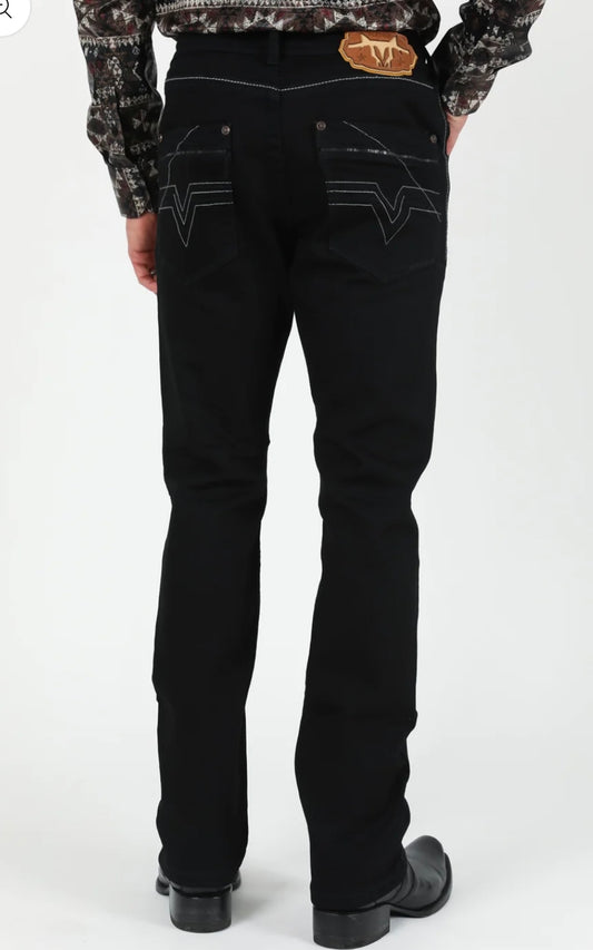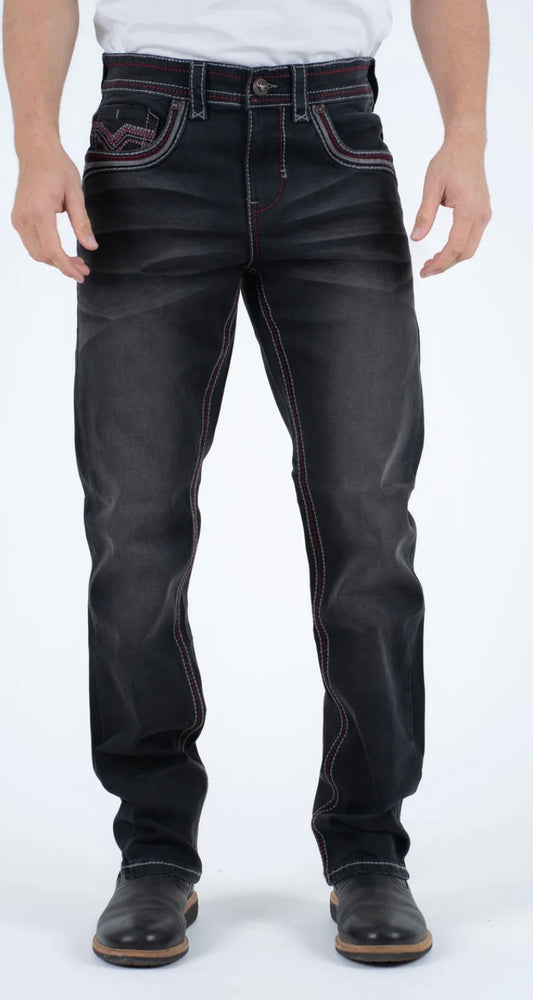 Platini Faded Black with Red Trim Slim Bootcut Jeans