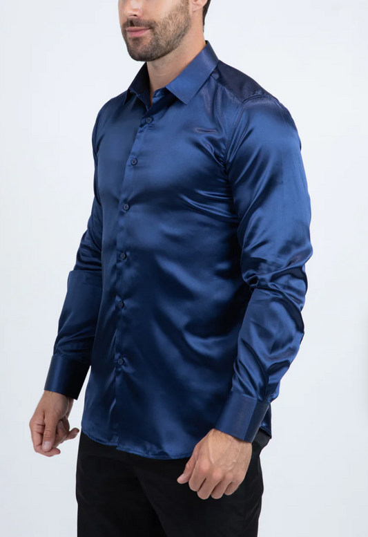 Navy with Red Buttons Men’s Long Sleeve Shirt