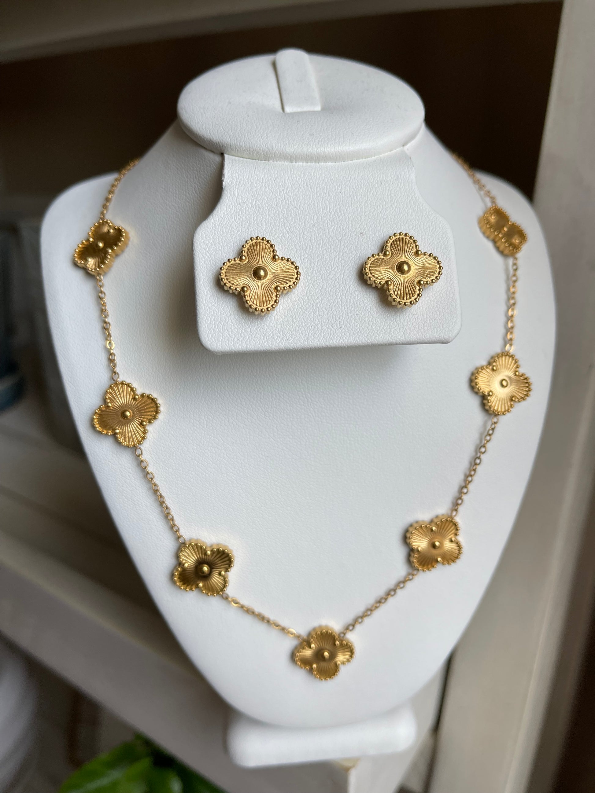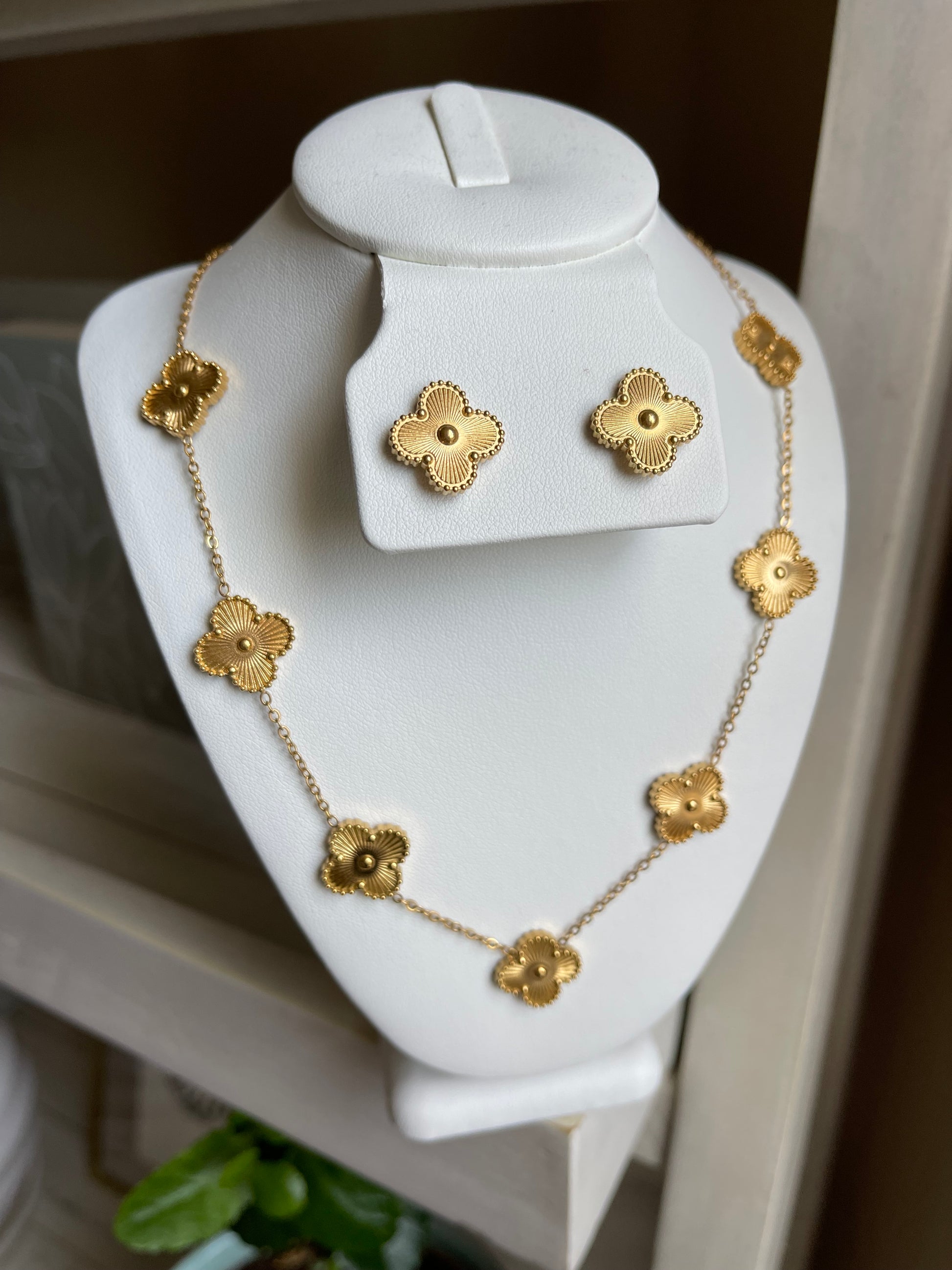 Golden Lucky Clover Necklace Set