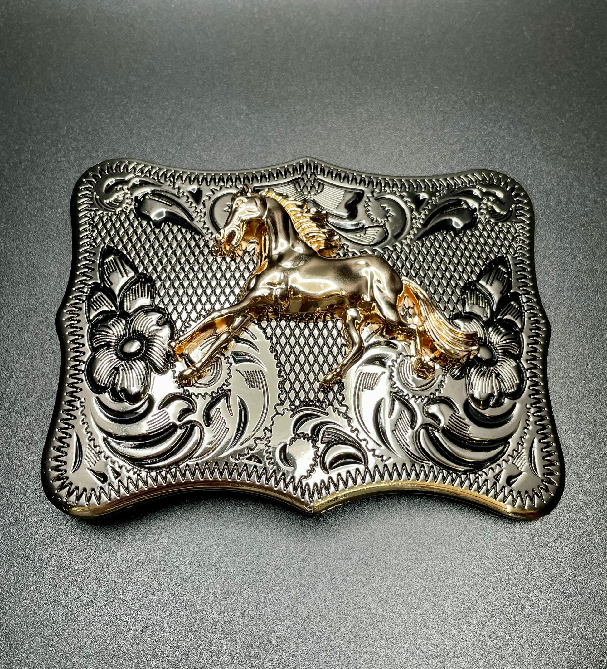 Silver Buckle With Bronze Horse