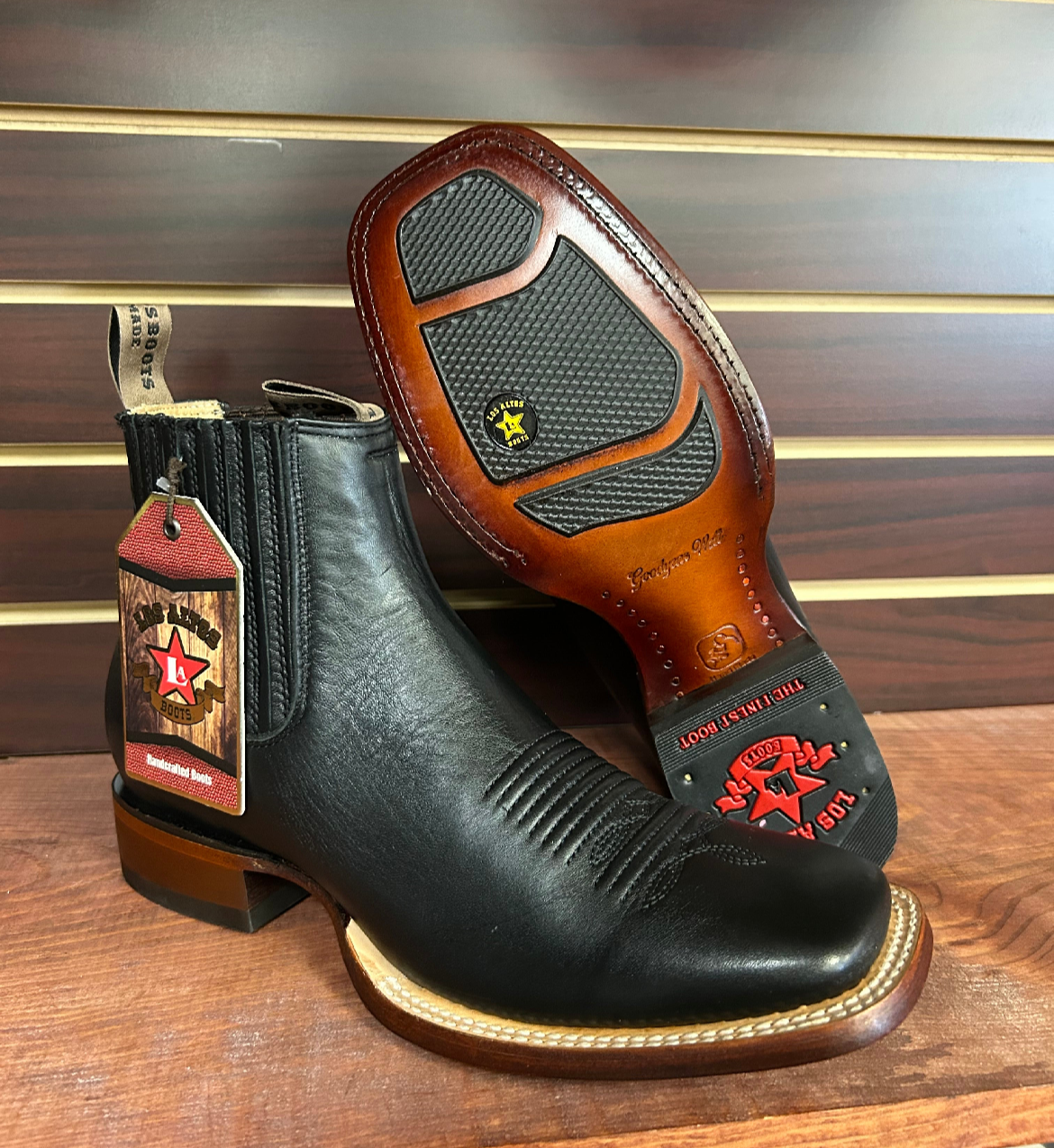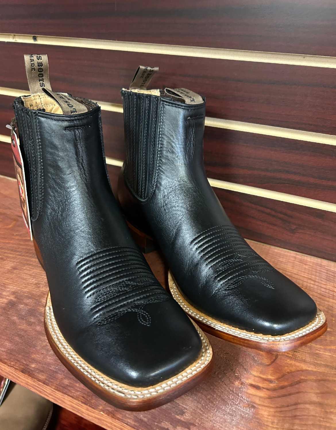 Square Toe Deer Skin Men’s Ankle Boot (Black)