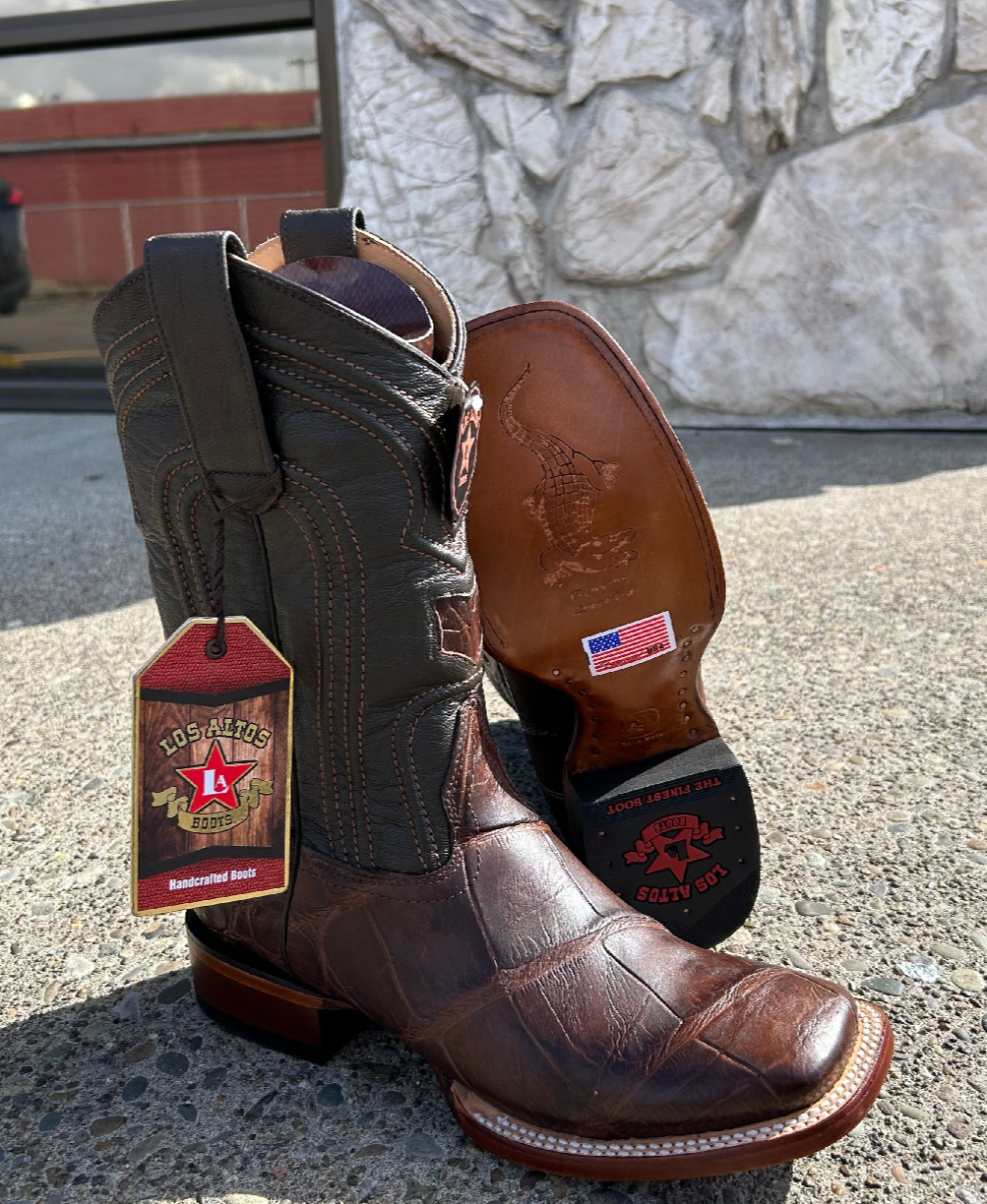 Square Toe Genuine Alligator Boot (Brown)