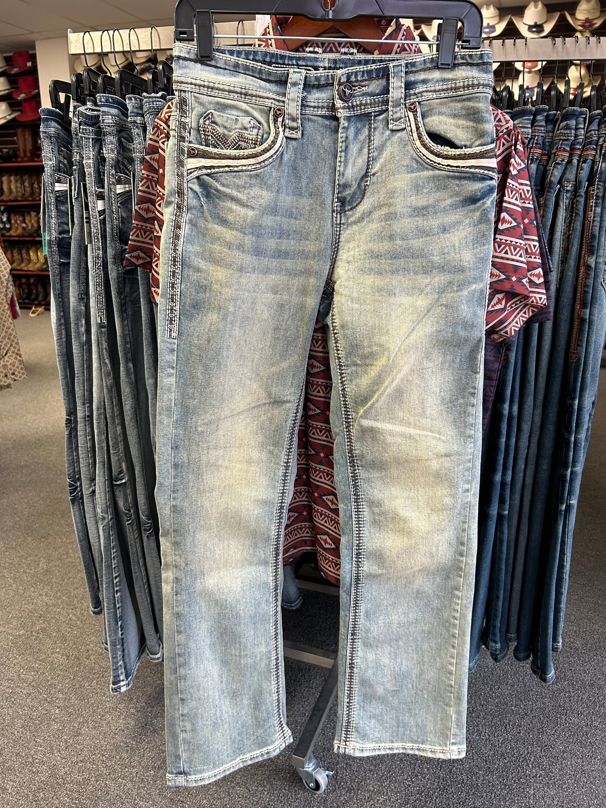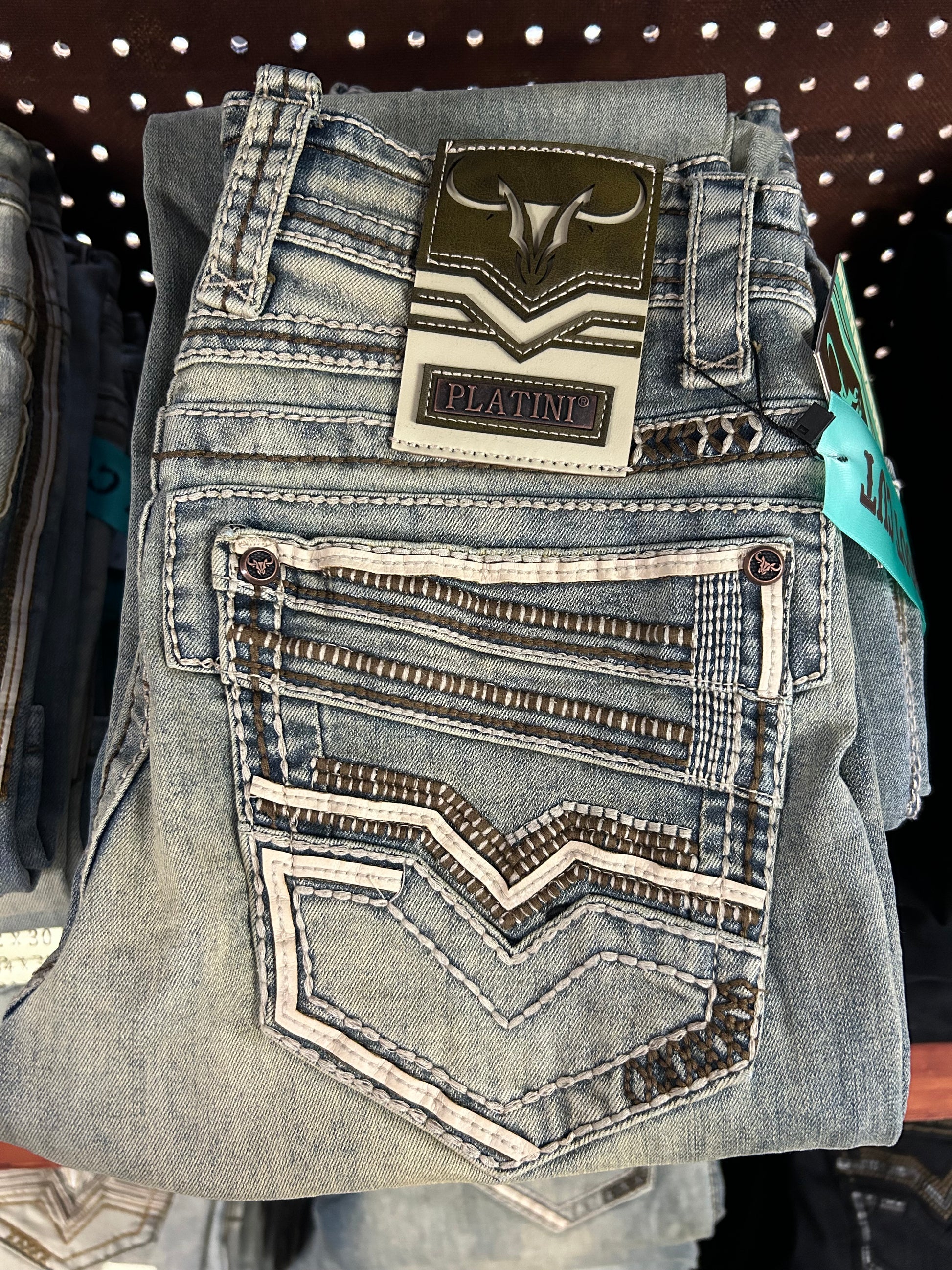 Platini Light Wash Brown Embroidered Bootcut Jeans